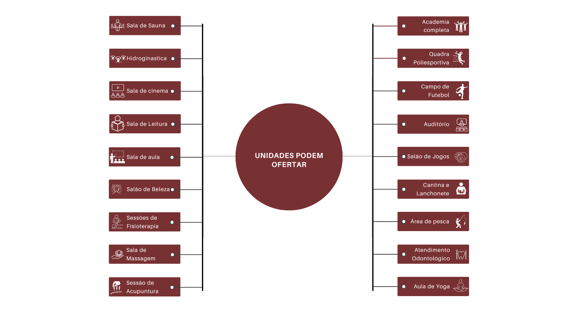 Não por acaso temos clínicas dos mais diferentes padrões, entre eles dispõe de área de pesca, campo de futebol, ambientes para artes, sala de jogos, piscina, salão de beleza entre outros.